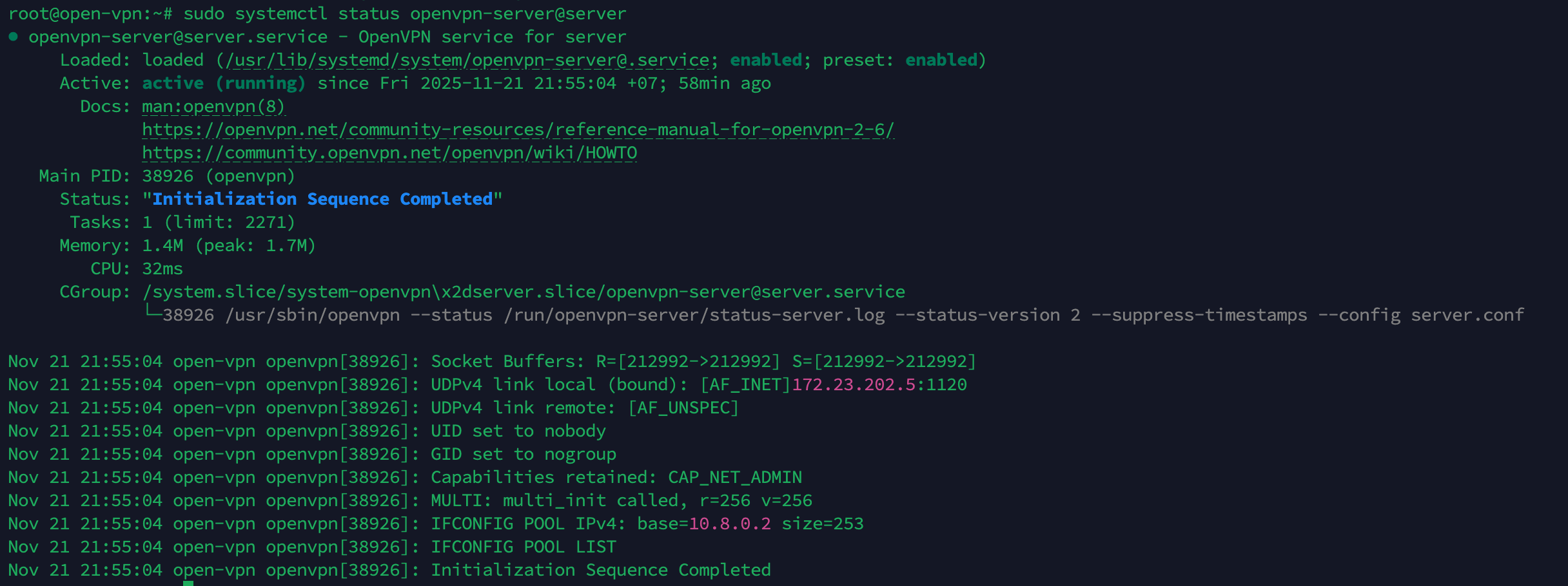 sudo systemctl status openvpn-server@server